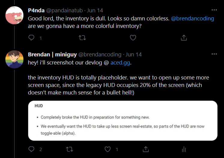 The in-game HUD will be completely overhauled. The current HUD blocks nearly 20% of the screen, which aggressively restricts our abilities to design content. We were in the process of experimenting with a new HUD when CT2 was scheduled to begin, but we hadn’t finished the inventory, yet. We wanted the game to look like this: